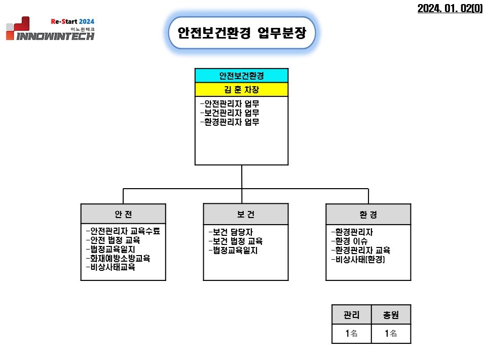 안전보건환경 업무분장 페이지 정보 작성자 이노윈테크 댓글 0건 조회 232회 작성일 24-08-22 10:49 목록 본문 안전보건환경 업무분장 이전글24년 유틸리티 현황(전기,용수,폐수,재활용) 24.08.22 다음글24년 환경경영 목표 및 세부목표 24.08.22 댓글 0 댓글목록 등록된 댓글이 없습니다.